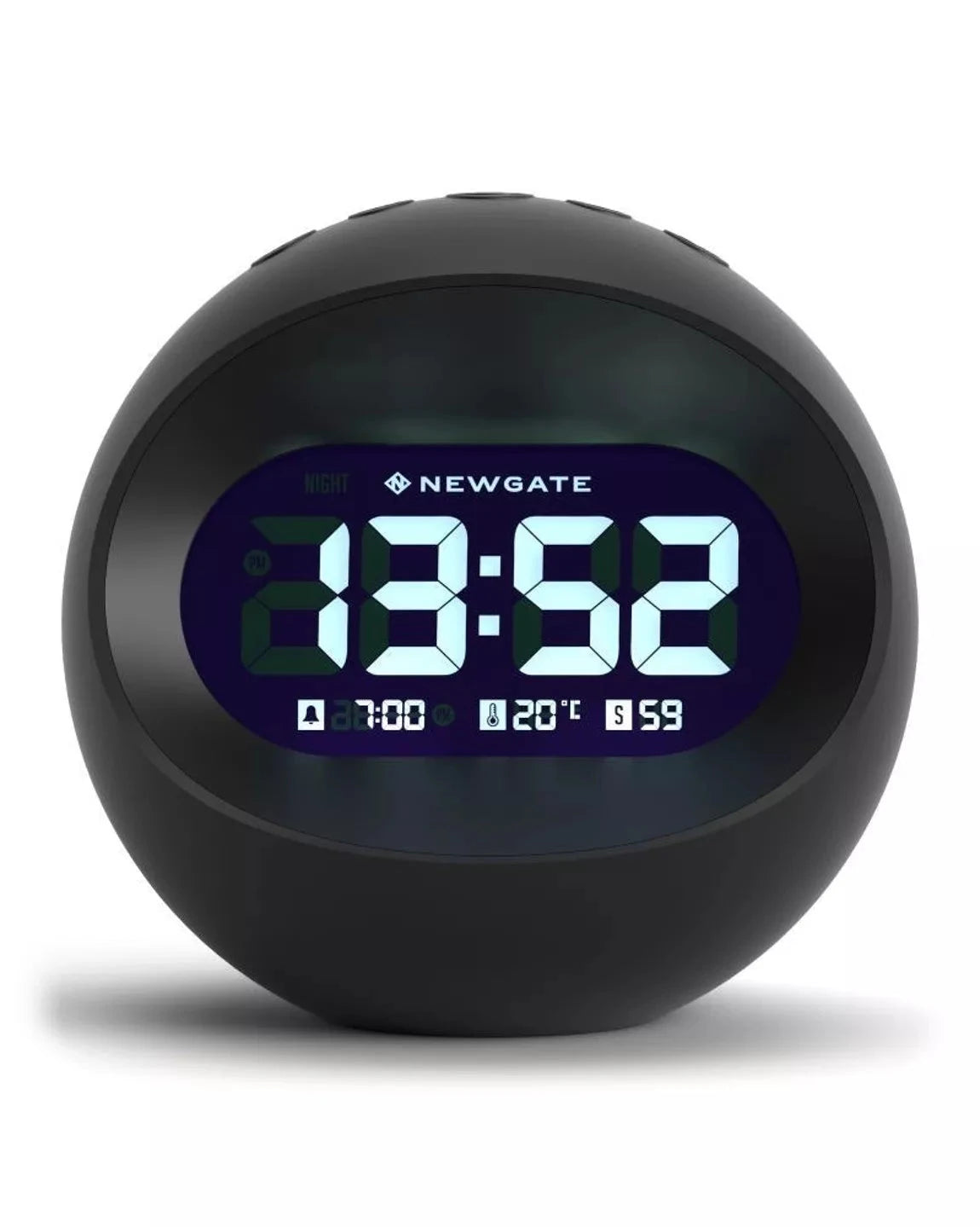 Réveil LCD sphérique avec un écran multifonction noir élégant qui apporte une touche à la fois moderne et rétro à une pièce. Ce réveil au design britannique unique comprend un affichage de l'heure sur 12 ou 24 heures, une alarme numérique, une fonction de répétition de réveil et un affichage de la température.